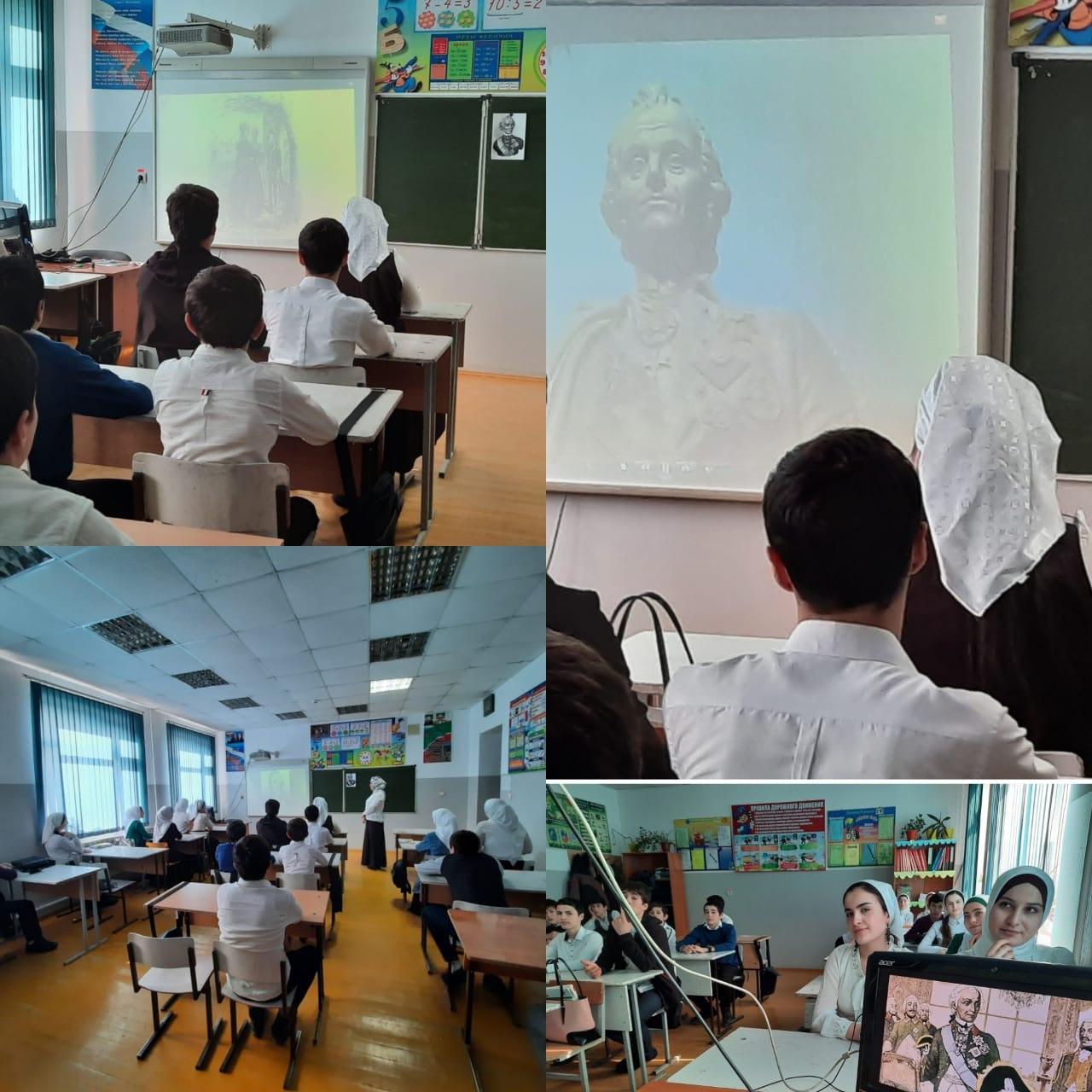 Учитель истории Бисултанова Петимат Халиловна провела тематический показ фильма, посвящённый 290-летию со дня рождения Генералиссимуса А.В.Суворова о жизни и победах!!!
