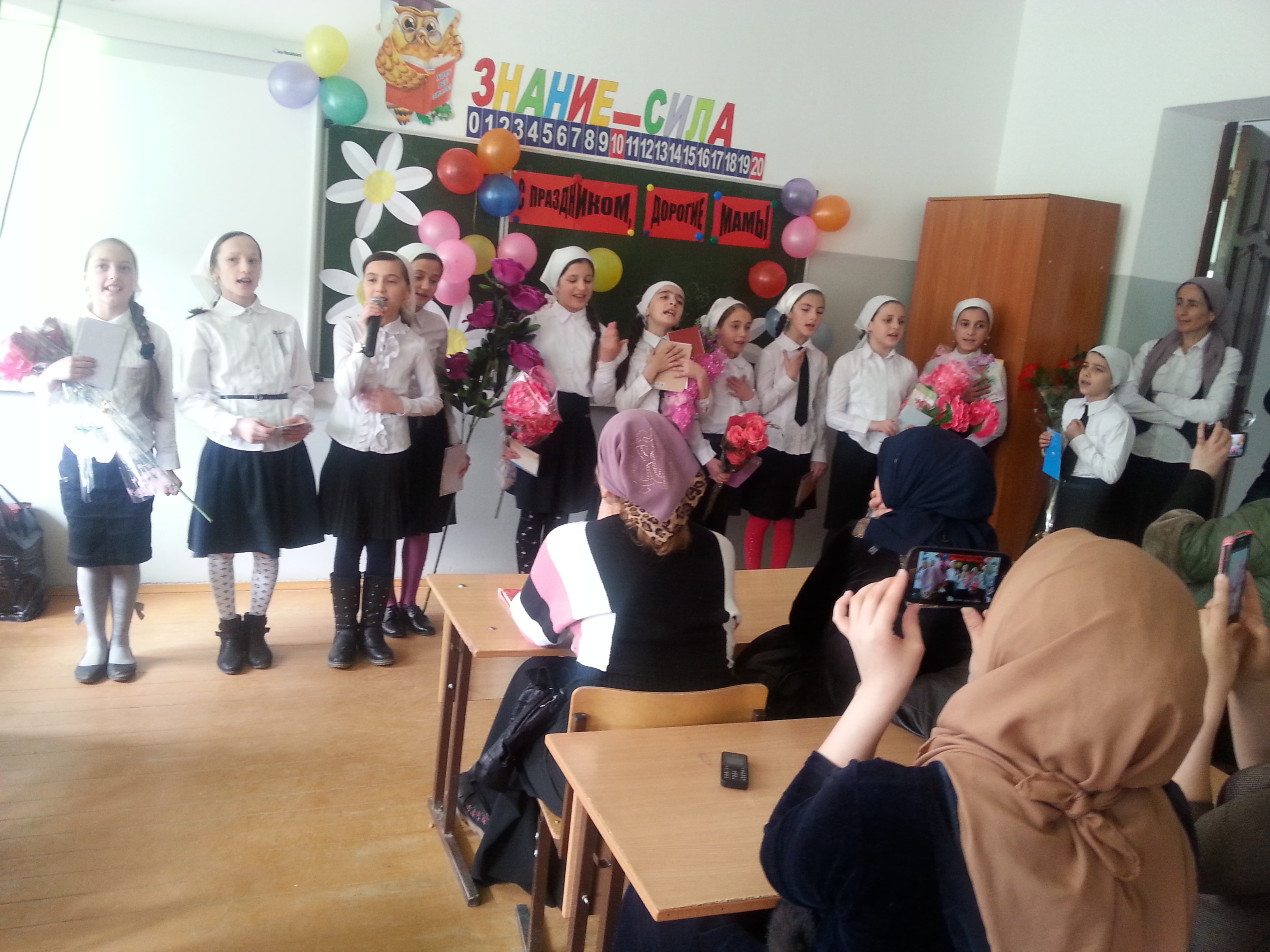 Все учителя подготовились достойно. Каждый день был насыщен праздничным настроением. Хочется отметить работу следующих учителей: Саидовой Т.Т. рук. 5 «б» класса, которая мероприятие с использованием ИКТ., Пашаевой З.Т. учитель 1 «б» класса, Эльбиевой А.Х. учитель нач. классов, Алархановой М.М. кл.рук. 6 «б» класса, Алсултановой М.С. кл. рук. 7 «а» класса, Джанаевой М.Р. – руководителя 8 «б» класса, которая подготовила общешкольное мероприятие, тоже посвященное священной женщине всех наций – маме. Мероприятия получились насыщенными, с использованием ИКТ, разными сценками.Особенно запоминающим была сценка, которая подготовила Эльбиева А.Х. учитель нач.кл.- 1 «а» «Остановка 8 марта».Так же хочется отметить плодотворную работу учителей начальных классов: Тулуевой Р.(учит. 3 «а» класса), Сайдуевой Л.(учит. 2 «а» класса), Дашаевой Х.Э. (учит. 4 «а» класса), которые тоже внесли свои краски празднования 8 марта.«Нана, хьан кераюкъ беркатан хьаьтта, сайна юй ца хууш хьешна ас латта» волнующими словами начала своё мероприятие Саидова Т.Т. (кл.рук. 5 «б» класса) На родном языке слова звучали еще волнующе. Дети читали стихи, пели песни. От имени родителей выступила Басава Белита, которая отозвалась в адрес учителей теплыми словами.Активное участие приняли дети в конкурсе рисунков. Были подготовлены разные рисунки (карандашом нарисованные и красками), победителями которого стали: Айсултанова Ж.С. Начуев А. (ученик 7 «а» класса), Давгериева С. (ученица 2 «а» класса).Считаю, что удалось достичь поставленных целей.
